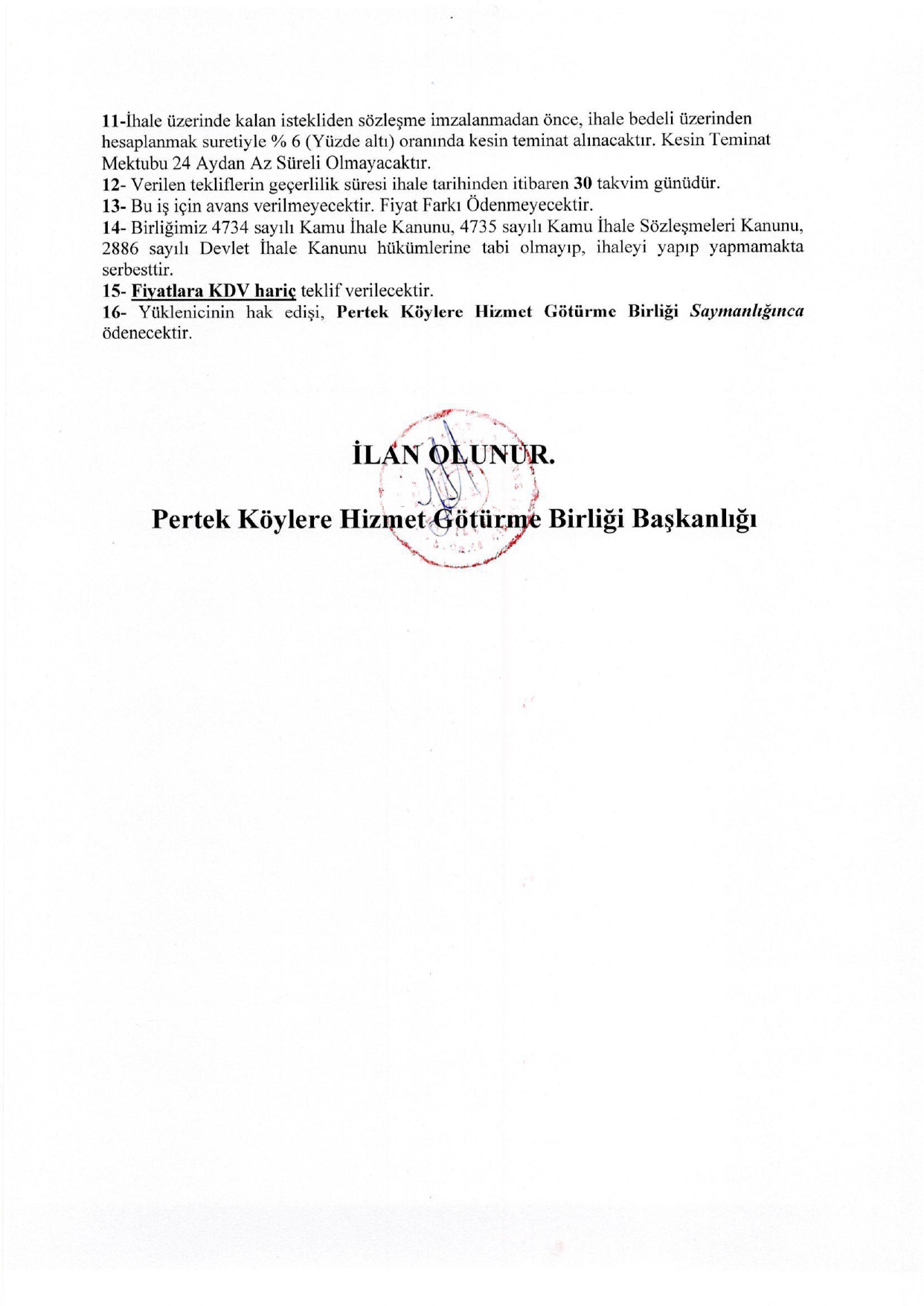 İHALE İLANI (KÖYLERE HİZMET GÖTÜRME BİRLİĞİ)