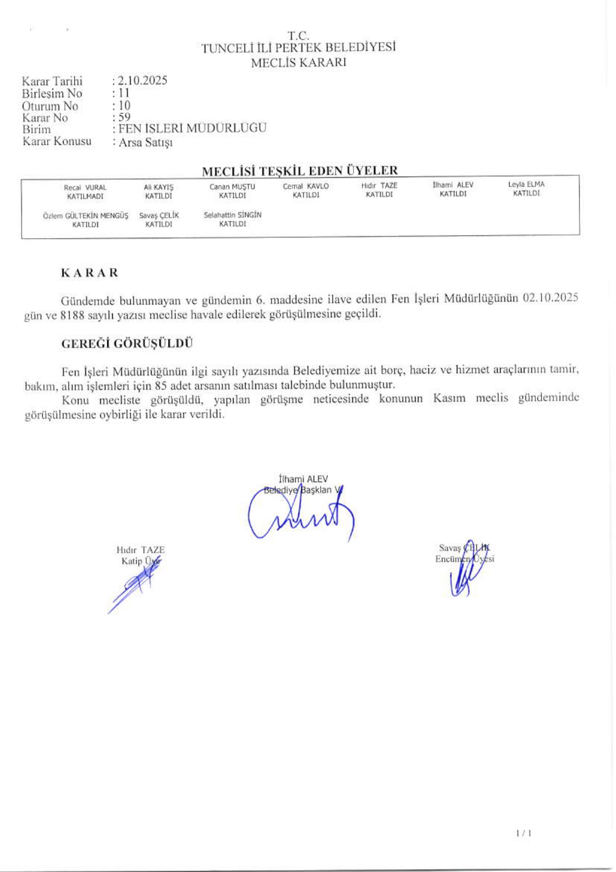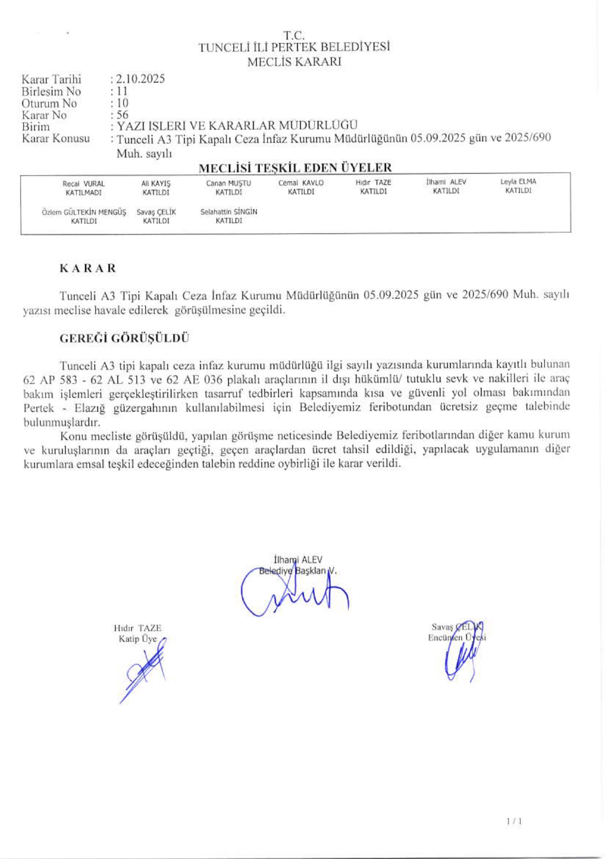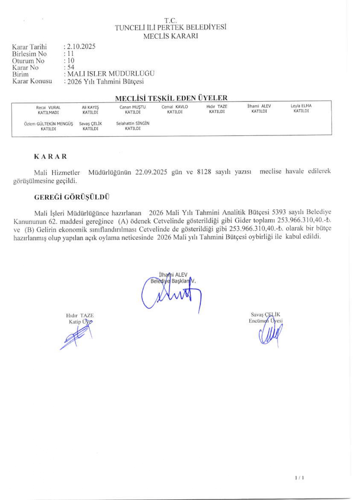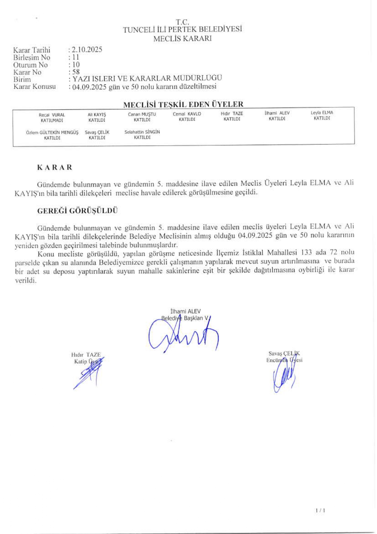 2025 YILI EKİM AYI MECLİS KARARLARI