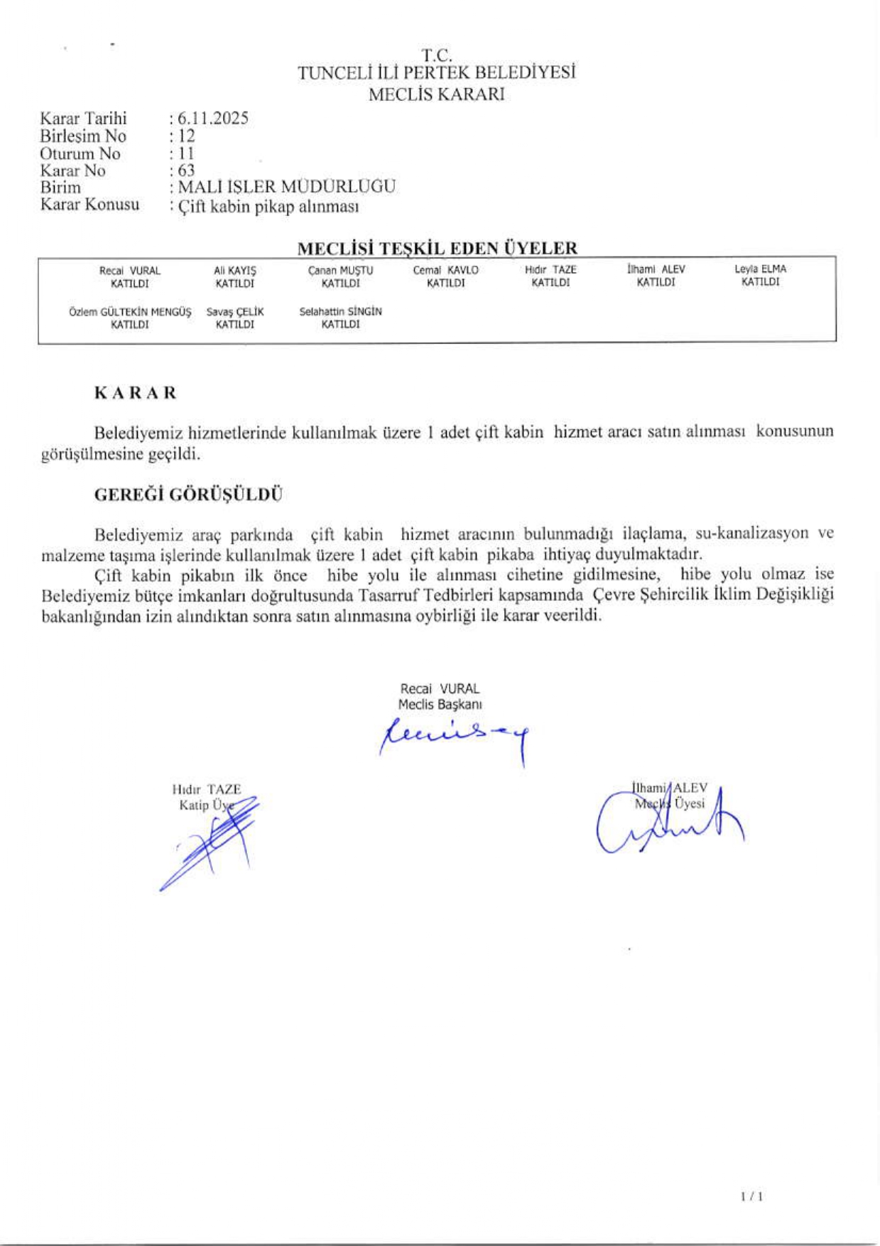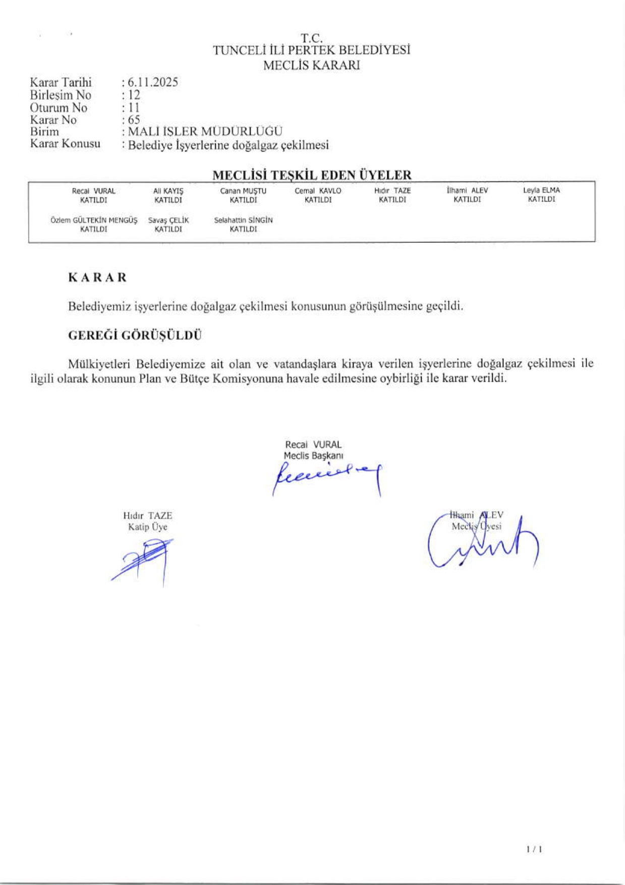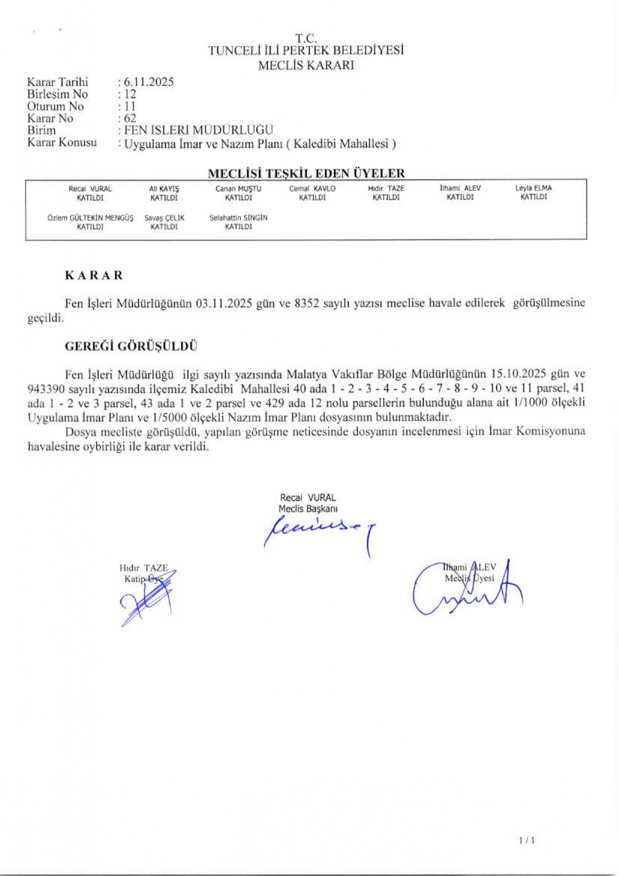 2025 YILI KASIM AYI MECLİS KARARLARI