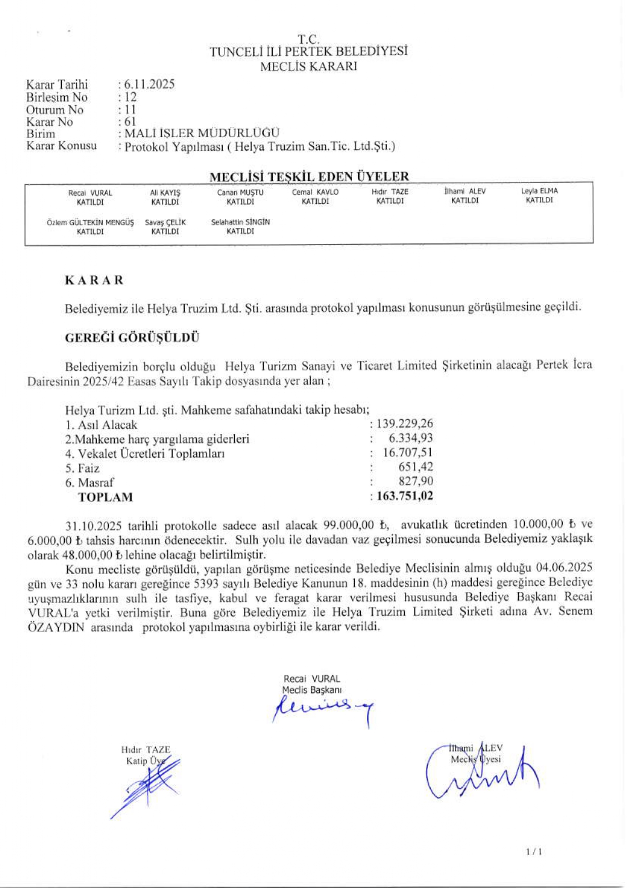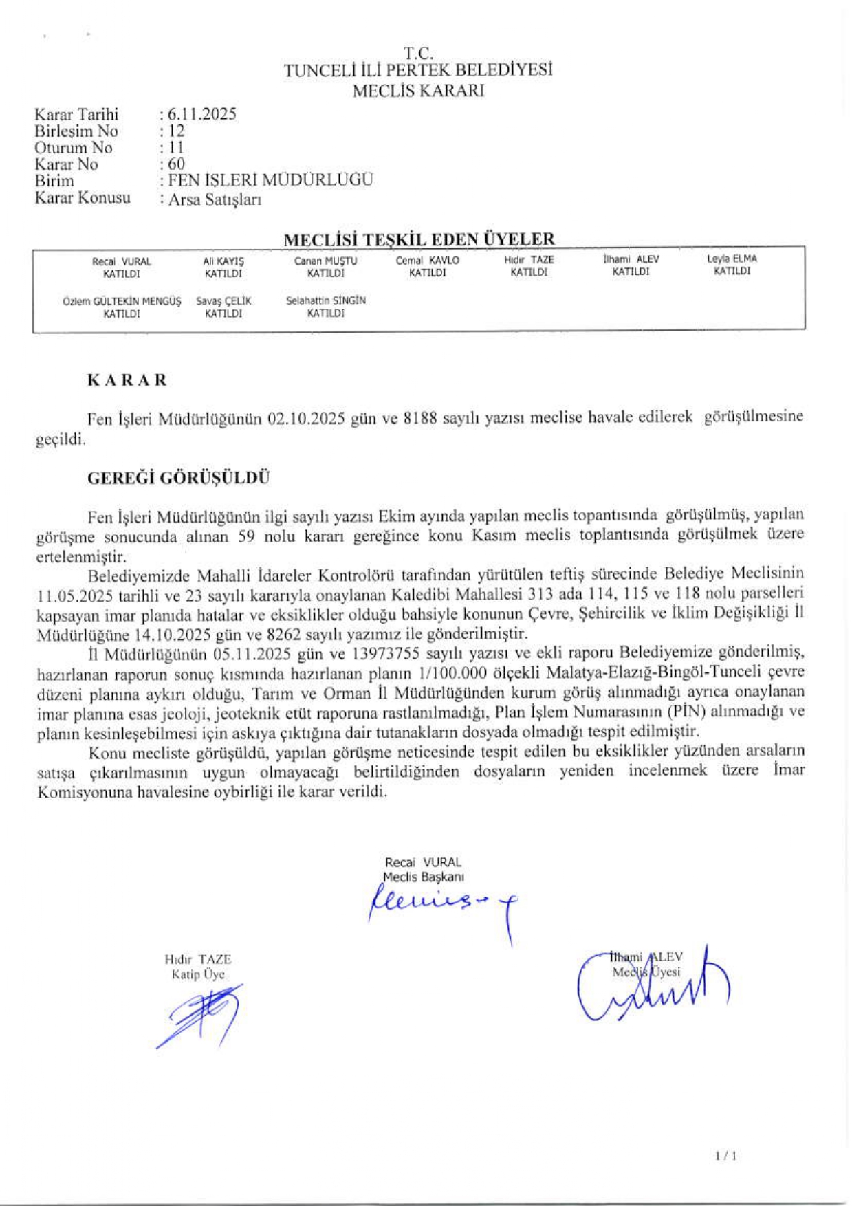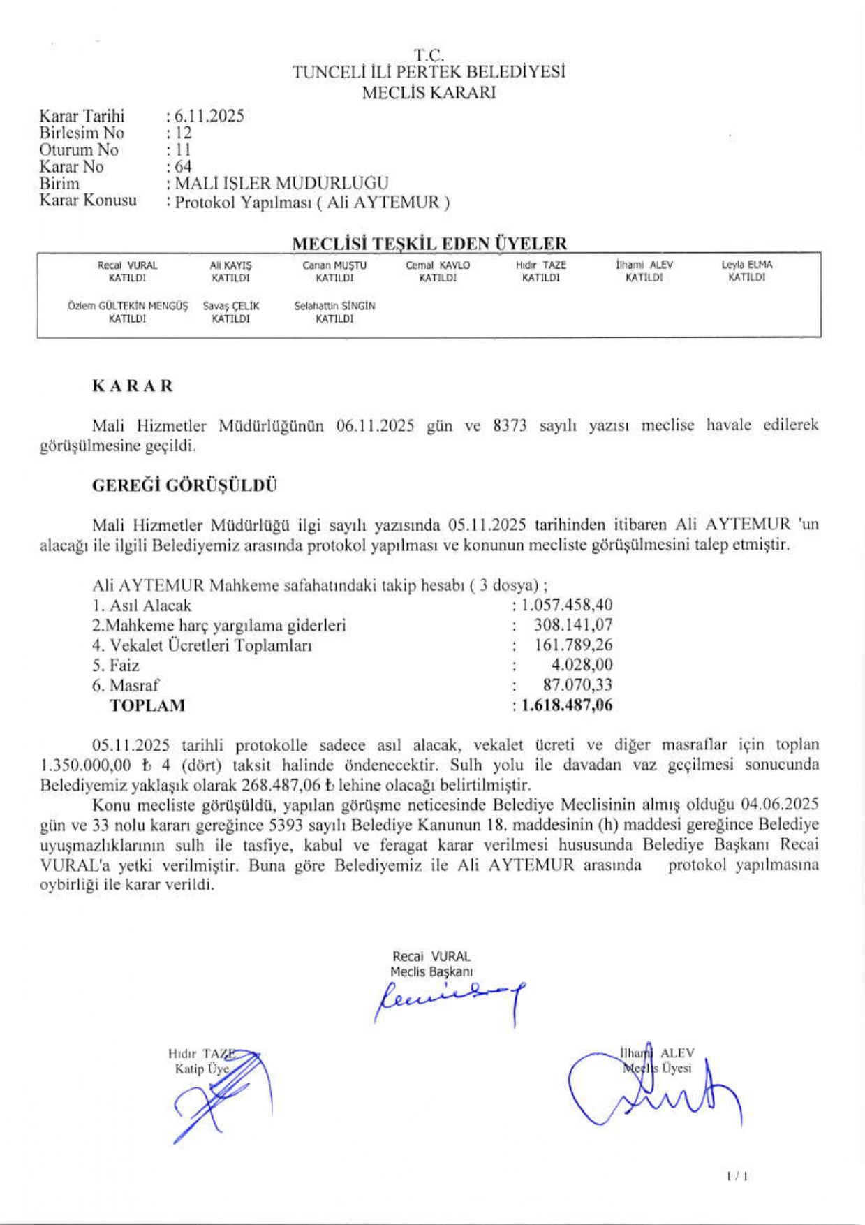 2025 YILI KASIM AYI MECLİS KARARLARI