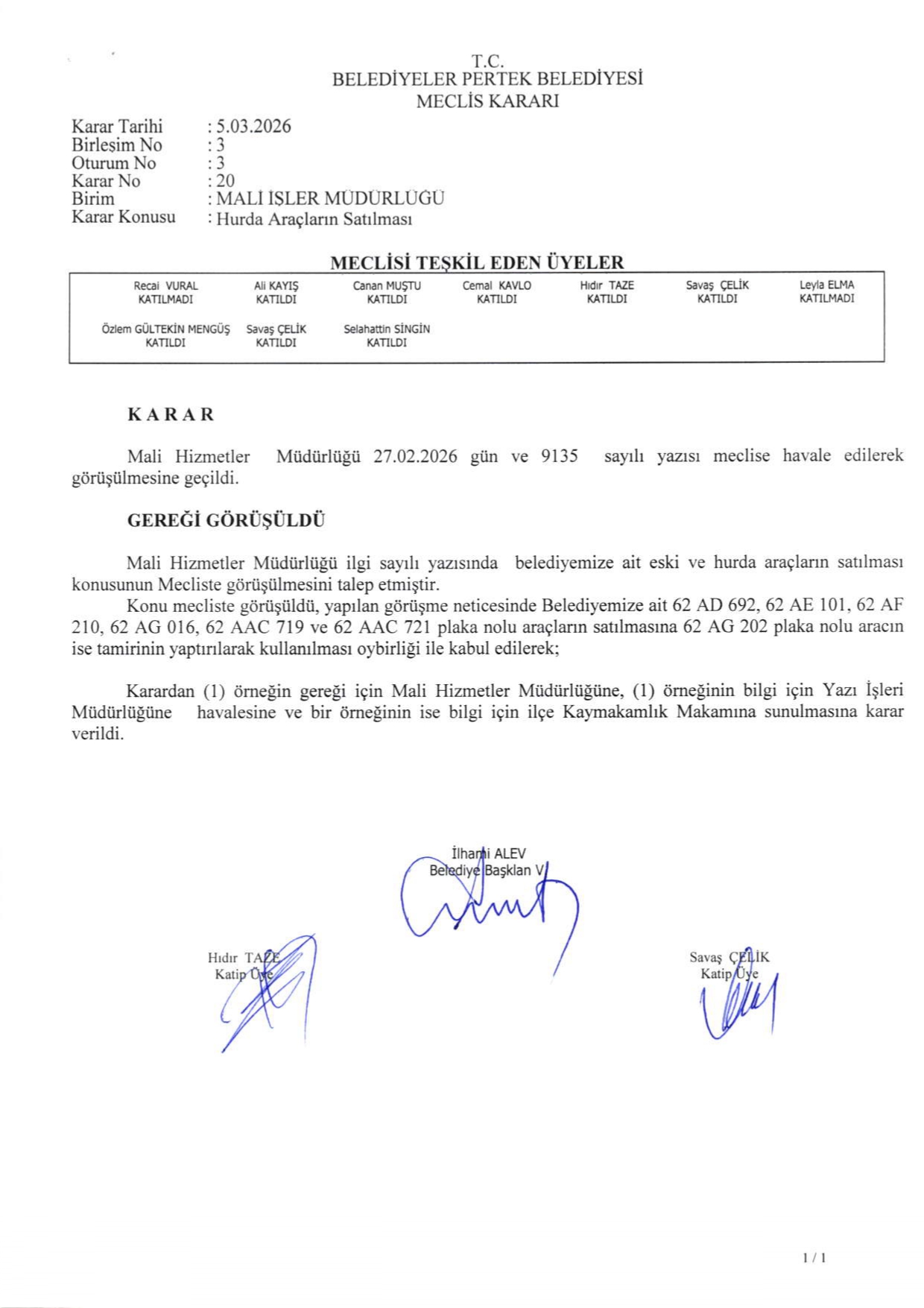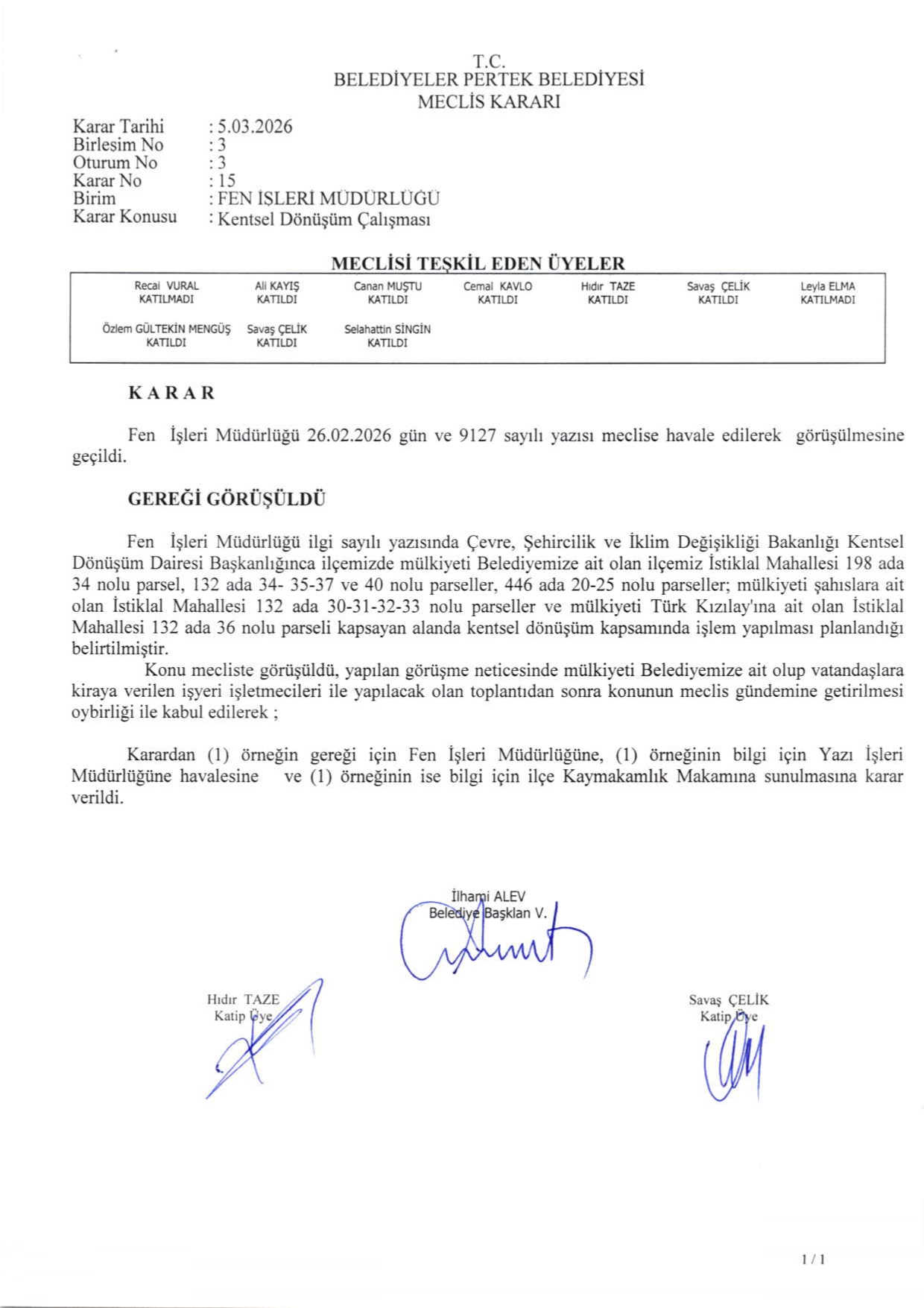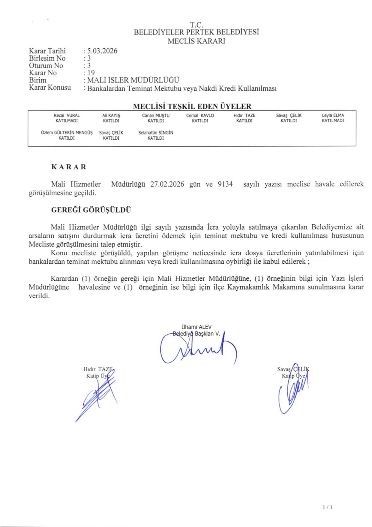 2026 YILI MART AYI MECLİS KARARLARI