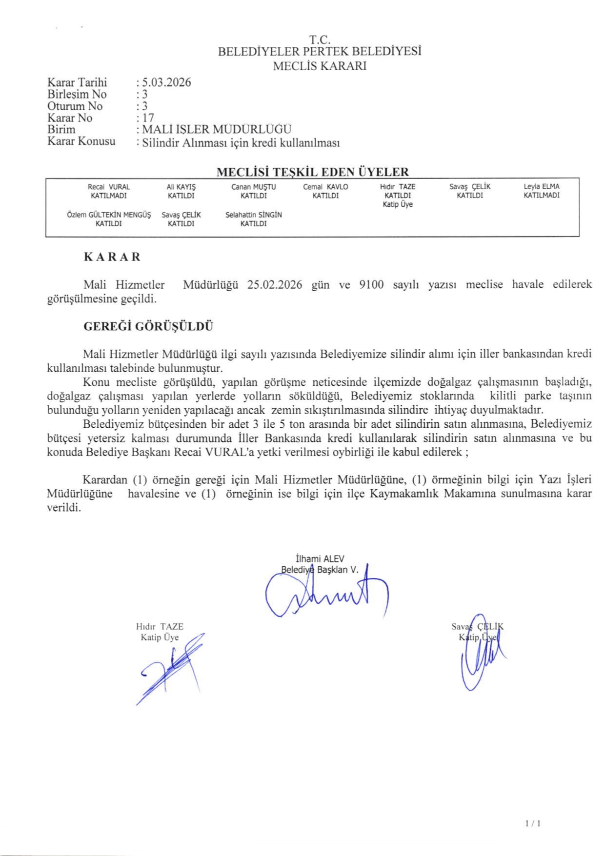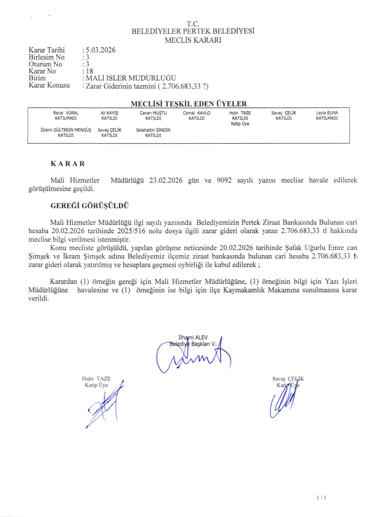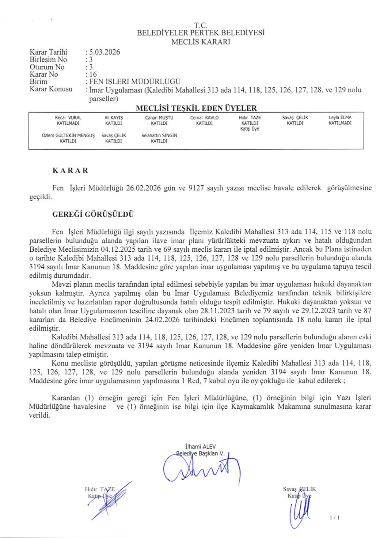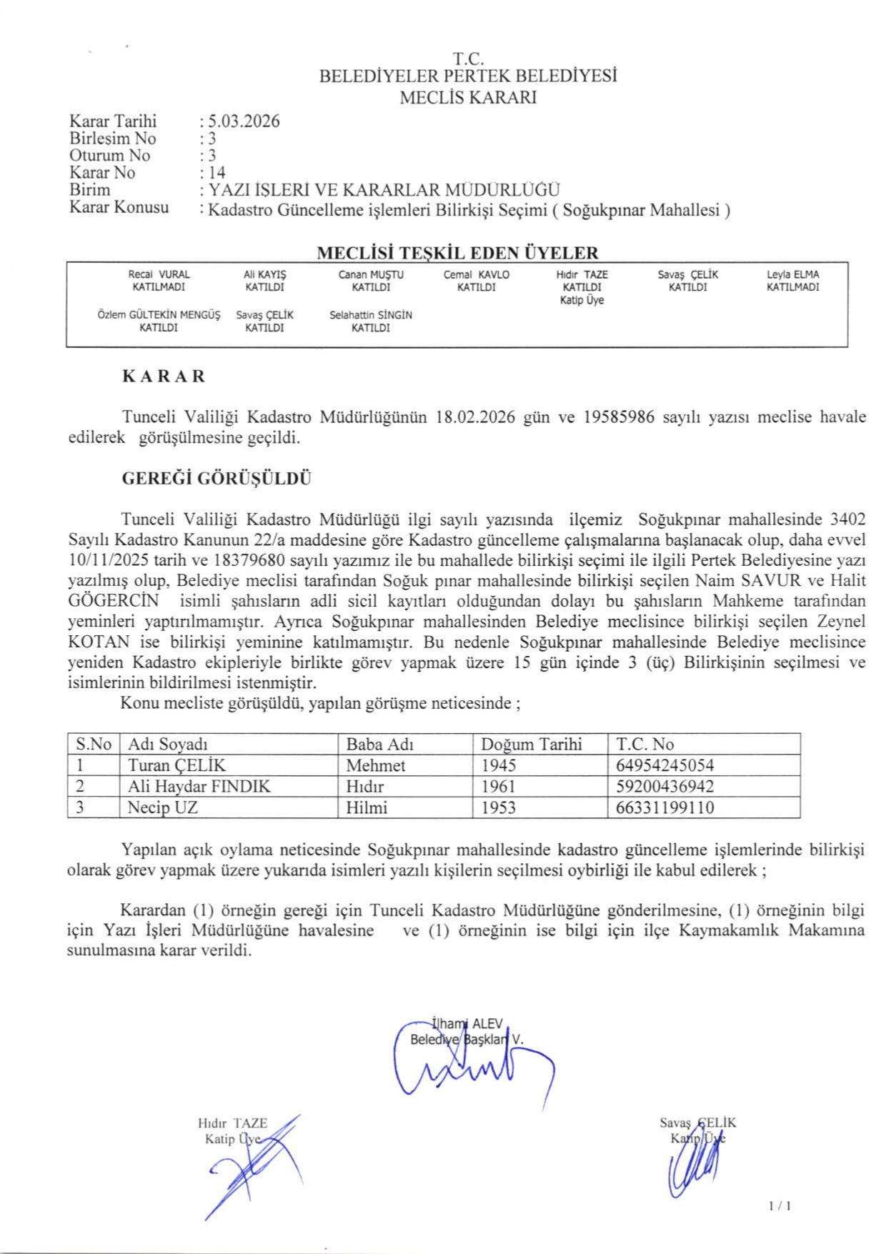 2026 YILI MART AYI MECLİS KARARLARI