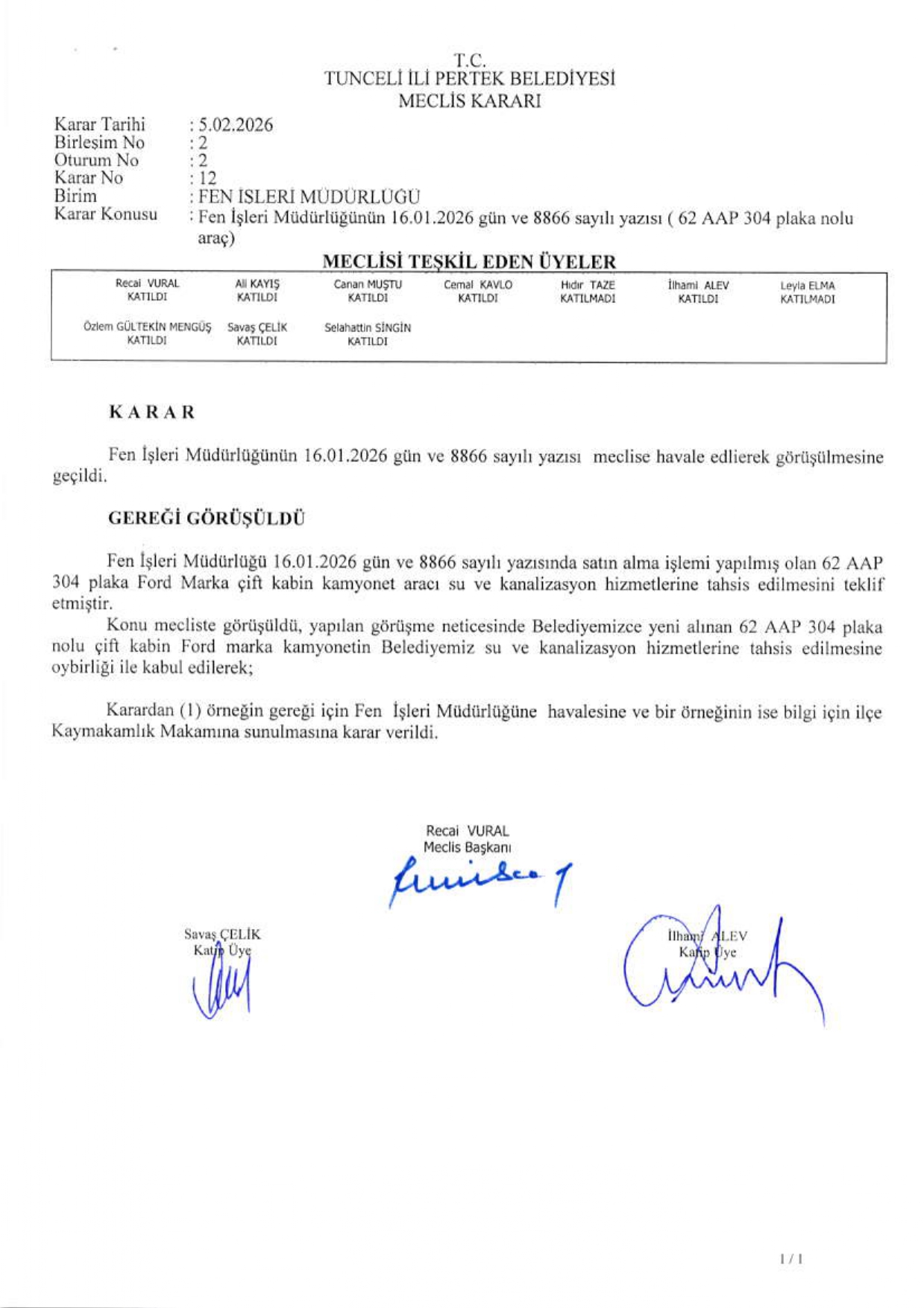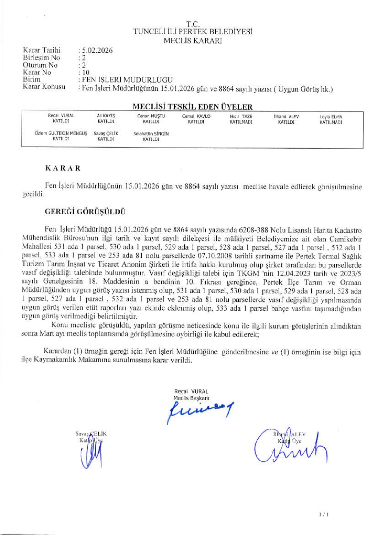 2026 YILI ŞUBAT AYI MECLİS KARARLARI